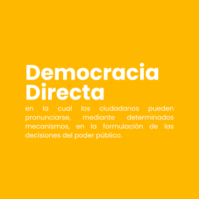 Existen autoridades encargadas de la democracia directa y participativa, estas se asegurarán de que los mecanismos cumplan con parámetros internacionales de accesibilidad que garanticen la participación de todas y todos. Las autoridades son: Titular de la Jefatura de Gobierno, Congreso, Alcaldías, Instituto Electoral de la Ciudad de México, Tribunal Electoral de la Ciudad de México, Secretaría de la Contraloría General y Sala Constitucional.